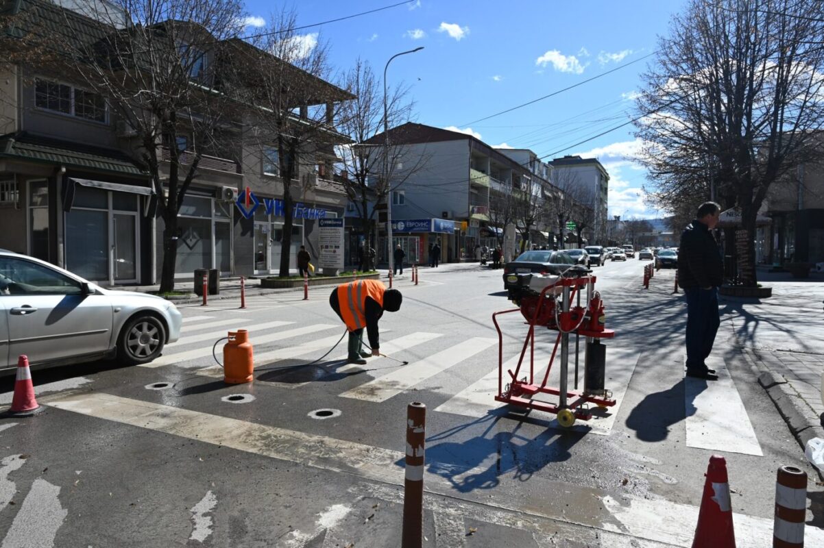 Вардарски регион Велес Искроени крошните на дрворедите јасен на централната улица во Велес 14 февруари, 2026