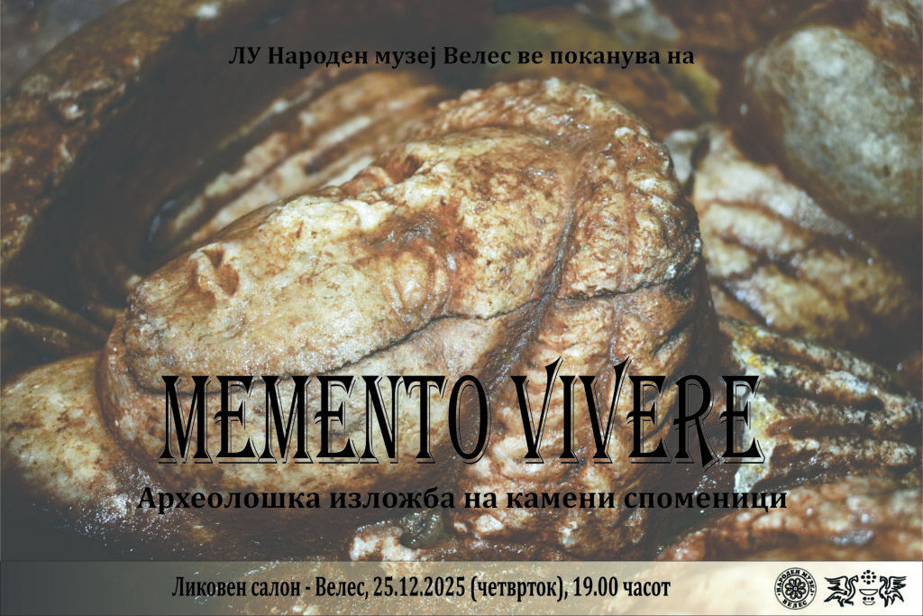 Во Ликовниот салон во Велес, вечерва, со почеток во 19 часот, ќе биде отворена археолошката изложба на камени споменици „Memento vivere“, во организација на ЛУ Народен музеј Велес.
