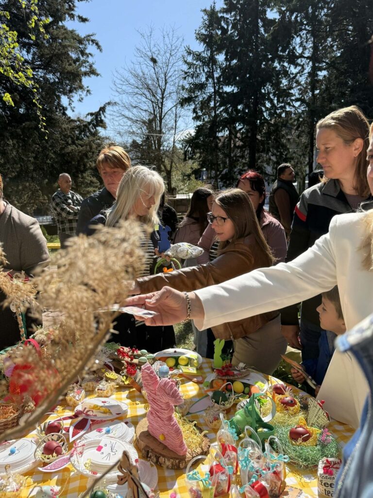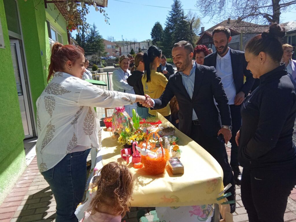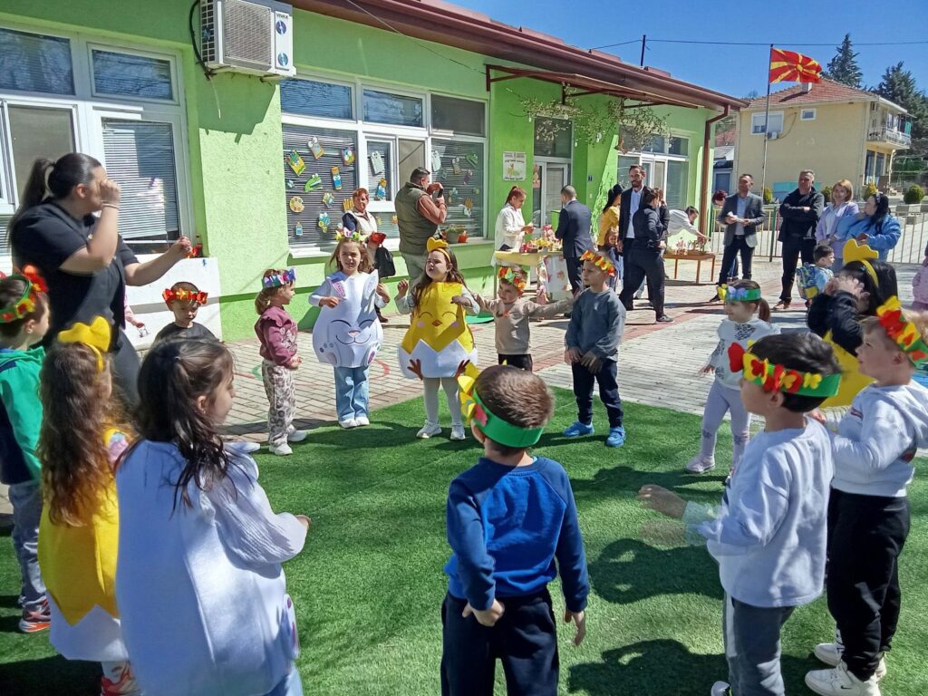 Во дворот на детската градинка декориран во духот на Велигденските празници, на тезгите се продаваа голем број на рачно изработени декорации. Додека граѓаните ги купуваа децата приредија програма во која играа, танцуваа и пееја во чест на претстојниот голем христијански празник.