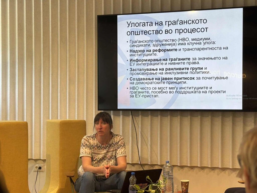 -Подобрувањето на дијалогот со локалните институции е клучен чекор за реално усогласување со европските вредности, но и за зголемување на довербата на граѓаните во процесот. Работилницата е дел од серија настани што се одржуваат во шест региони низ Северна Македонија, со цел поттикнување на дијалог и соработка меѓу граѓанскиот сектор и локалните институции, објасни Стојановиќ.