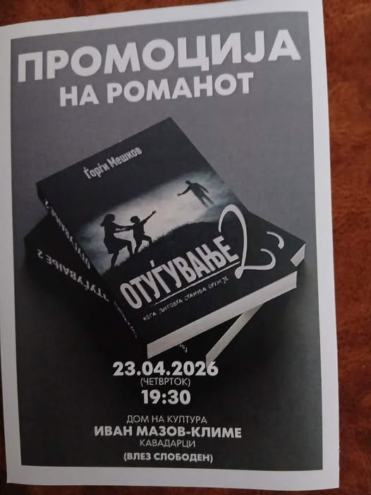 Kавадарчанецот Ѓорѓи Мешков, вечерва, го промовира романот „Отуѓување 2“ во родниот град