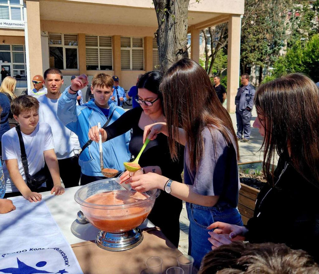 Таму, на целта, учениците од угостителската струка, заедно со своите професори Марјан Малинов, Јане Гонев и Кристинка Пачукова, ги пречекаа со подготвени смути напитоци од природни или здрави овошја и зеленчуци.
