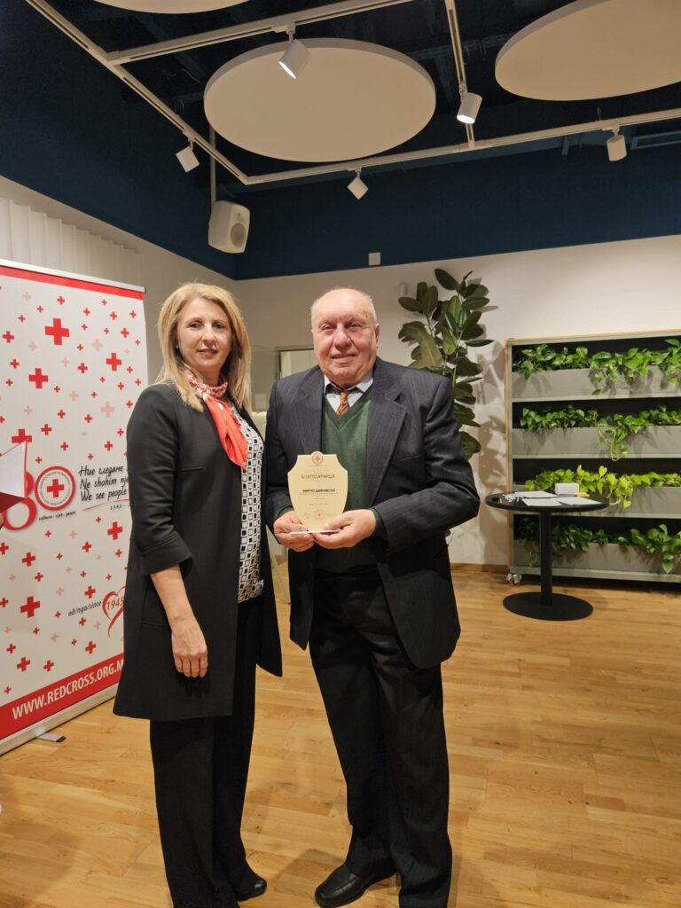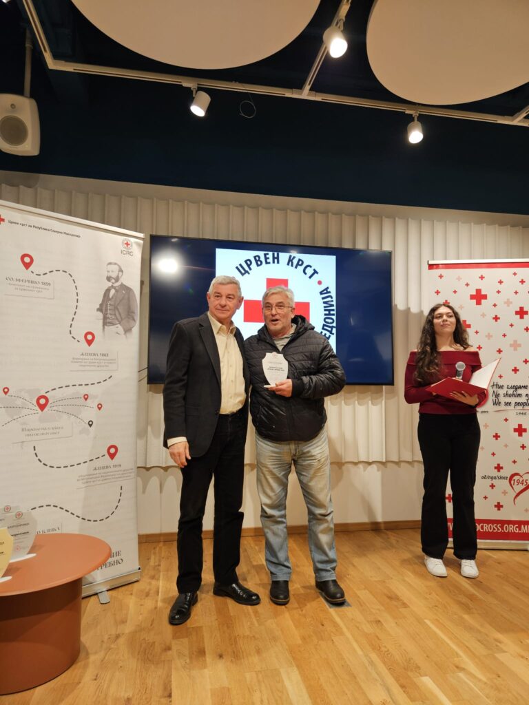 Годинешни добитници на наградата за животно дело за 2025 година за долгогодишен придонес и равој на велешкиот Црвен крст ја добија Петре Петрушевски и Мирчо Давчевски, двајцата најискусни хуманисти кои повеќе од 40 години стојат зад бројни активности на организацијата.