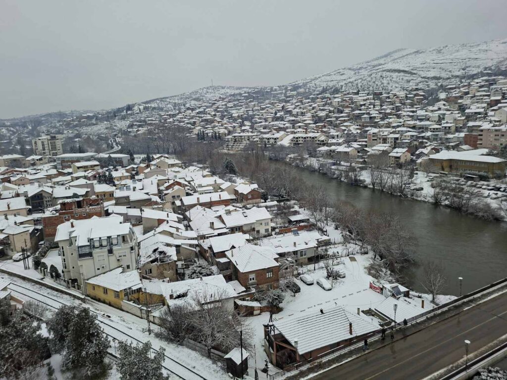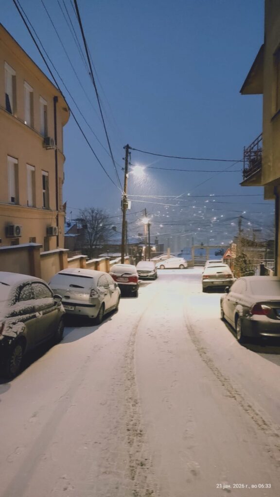 По неколку годишно чекање на снег во градот, утрово, конечно велешани се разбудија во снежна идила. Додека паѓаше снегот вака изгледаше Велес, во првото снежно утро во 2026 година. По слободна проценка висината на снежната покривка во Велес изнесува околу 5 см. Во моментот снег во градот не паѓа.