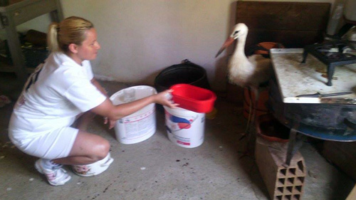 Изгубен и преплашен, првите два дена, штркот одбивал храна, вели Виктор. Потоа полека почнал да се навикнува и припитомува. На менито на птицата воглавно се наоѓаат риби, особено гирици, кои со апетит ги јаде. Штом ќе заздрави Виктор повторно ќе го врати во гнездото, за да биде меѓу оние со кои припаѓа.