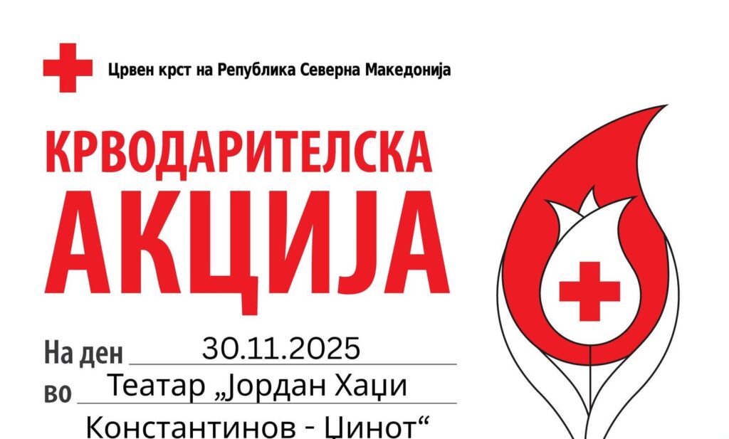 Во знак на хуманост и солидарност, Здружението „Велес Бајкинг“ организира крводарителска акција која ќе се одржи во неделна, на 30 ноември во Театарот Ј.Х.К. „Џинот“ со почеток во 09:00 часот и ќе трае до 15:00 часот.