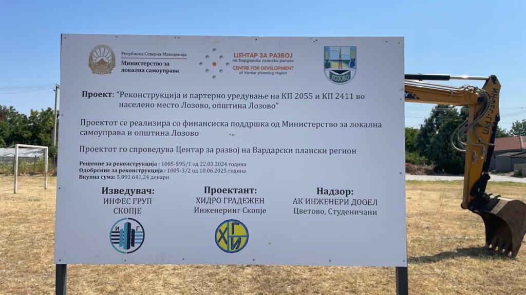 Со отпочнувањето на градежните активности на терен, започна реализацијата на проектот „Реконструкција и партерно уредување на КП 2055 и КП 2411“ во населеното место Лозово, општина Лозово. Проектот е дел од Програмата за намалување на диспаритетите меѓу и во рамки на планските региони и зголемување на регионалната конкурентност за 2025 година, и претставува значаен чекор во унапредувањето на јавниот простор во општината.