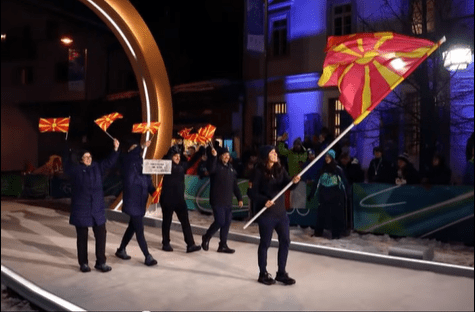 Македонскиот олимписки тим на свеченото отворање во телевисиакиот пренос беше прикажан од двете локации.