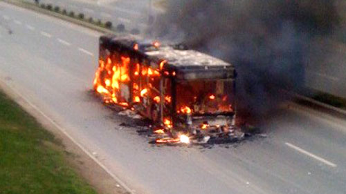 Демонстранти запалија автобус!