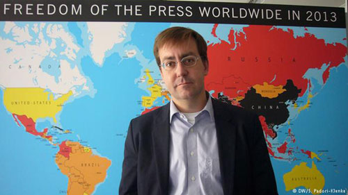„Пред предвремените парламентарни и пред вториот круг за избор на претседател ги повторуваме нашите барања за почитување на слободата на информирање, зашто изминативе години бевме сведоци на повеќе напади врз неа. Го имавме случајот Кежаровски, кој стана познат зашто станува збор за клеветење и кривично гонење на еден новинар. Од новиот претседател, без разлика дали ќе биде досегашниот или друг, бараме да се погрижи и на повисоко ниво да ја сочува слободата на информирањето, зашто станува збор за значајно добро и досегашните ограничувања треба да се повлечат“, вели за Дојче веле Кристијан Мир (на насловната фотографија), раководител на германската секција на Репортери без граница.