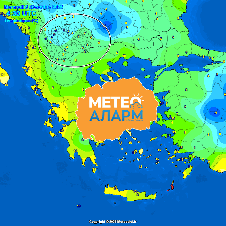 Како што објаснува времето е претежно облачно а од југозапад полека навлегуваат нови врнежи од дожд а на високите планини над 1800/1900 метри надморска височина повремено ќе има врнежи од снег.
