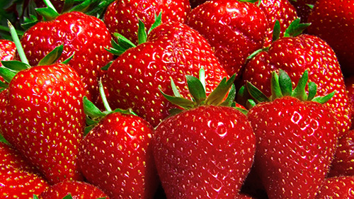 Црвени, во срцевидна форма, украсени со мало зелено ливче. Јагодите се задоволство, здравје, љубов, убавина.